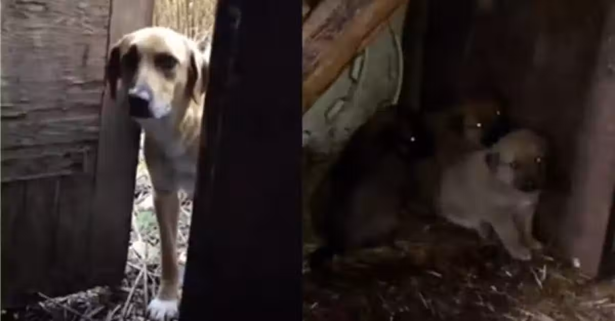 路邊站著一隻狗,帶著女子跟牠走,屋裡藏著8隻小狗:請救救偶的孩子