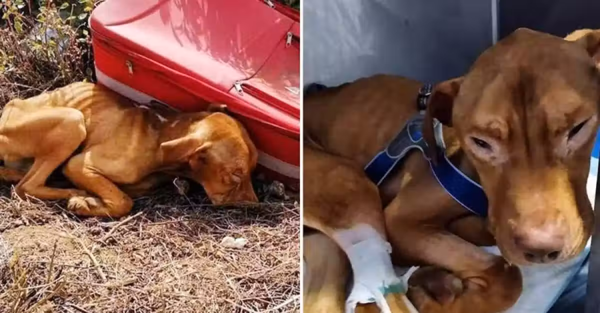被裝行李箱放在路邊的狗狗,體重只有13公斤,它依然在原地等主人