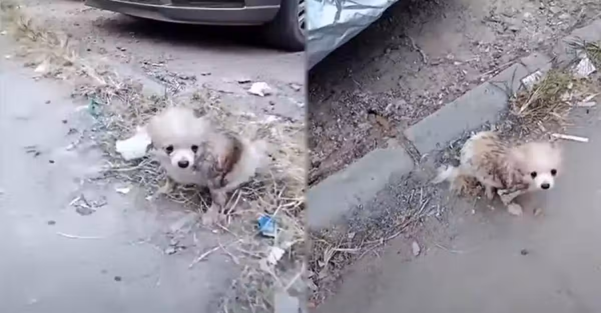 目睹這一幕的小張再也做不到放任它不管,小張蹲在狗狗的面前伸出了自己的手,狗狗見狀它先是疑遲了一會,隨即將頭磨蹭小張的手,似乎在向小張撒嬌。