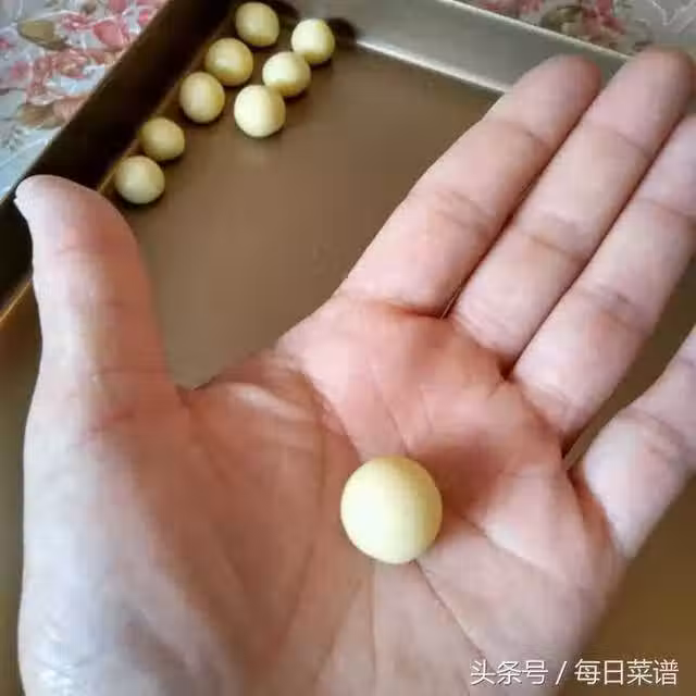 製作小球的過程較長,可以把麵團用保鮮膜蓋住,以免變幹。