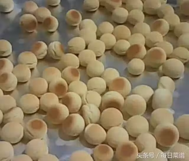 6、將揉好的小圓球 ,擺放在烤盤上,烤箱預熱,上下180度,烤十二分鐘即可。