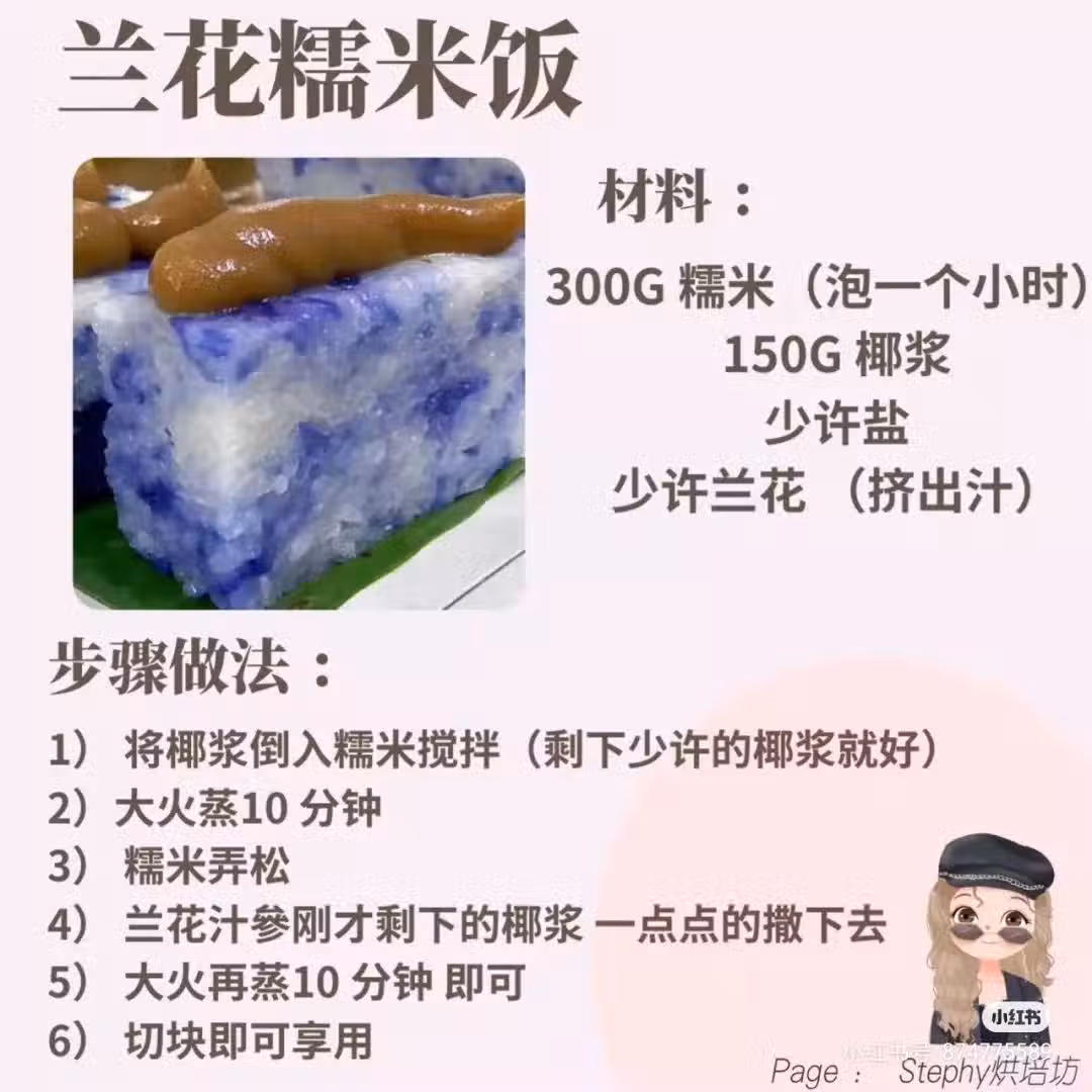 300G 糯米(泡一個小時) 150G 椰漿 少許蘭花 (擠出汁)