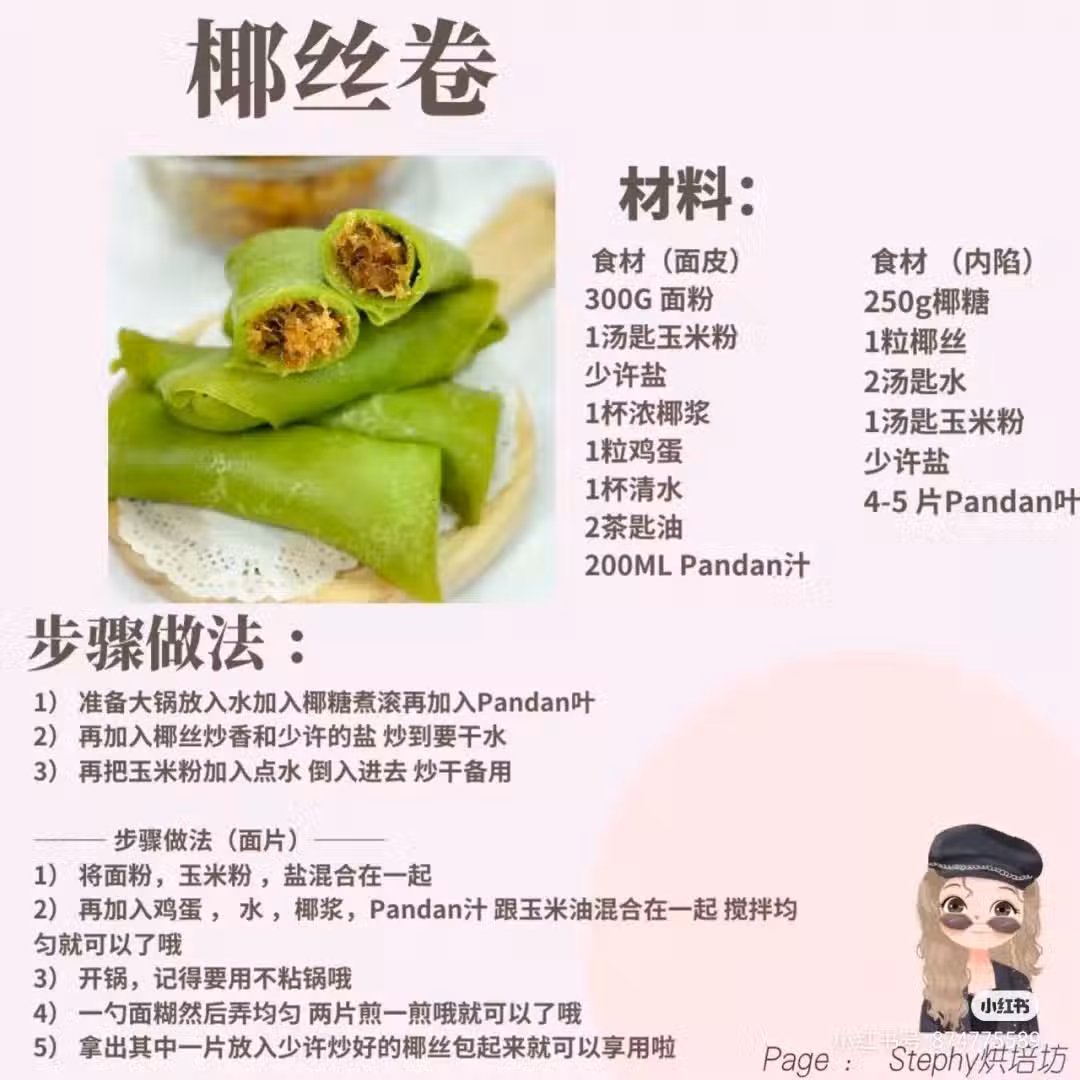 5) 拿出其中一片放入少許炒好的椰絲包起來就可以享用啦
