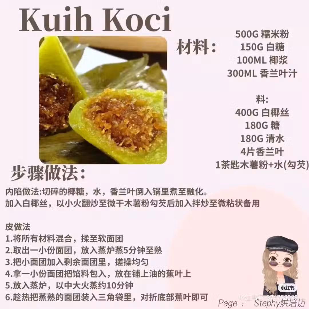 (A) 400ML水 100G 糖 400ML 椰漿 3片Pandan葉 120G 木薯粉