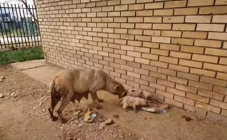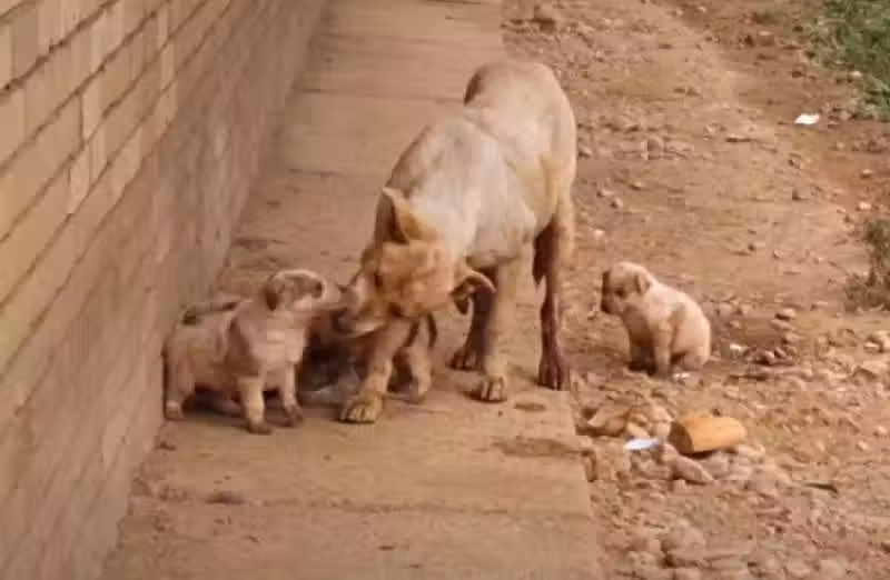 狗媽媽為何將4隻小狗置身於如此明顯的小巷裡?因為牠已經很是虛弱,為了在保護孩子的同時保住食物,牠只能這樣做。