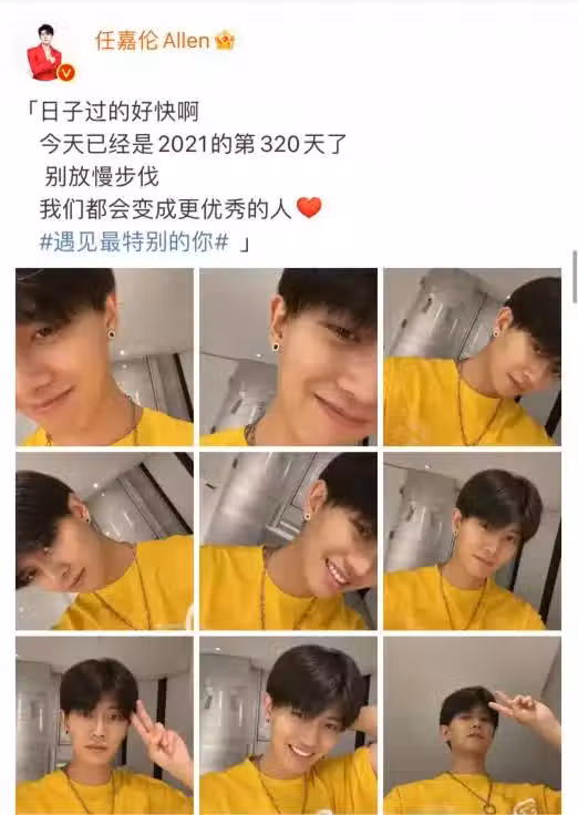此次回家,能與家人見面,自然是心情大好,16日中午時分,任嘉倫就罕見在微博曬出了九宮格照片,並感嘆時間飛快,同時呼籲大家別放慢步伐,我們都會變成更優秀的人。