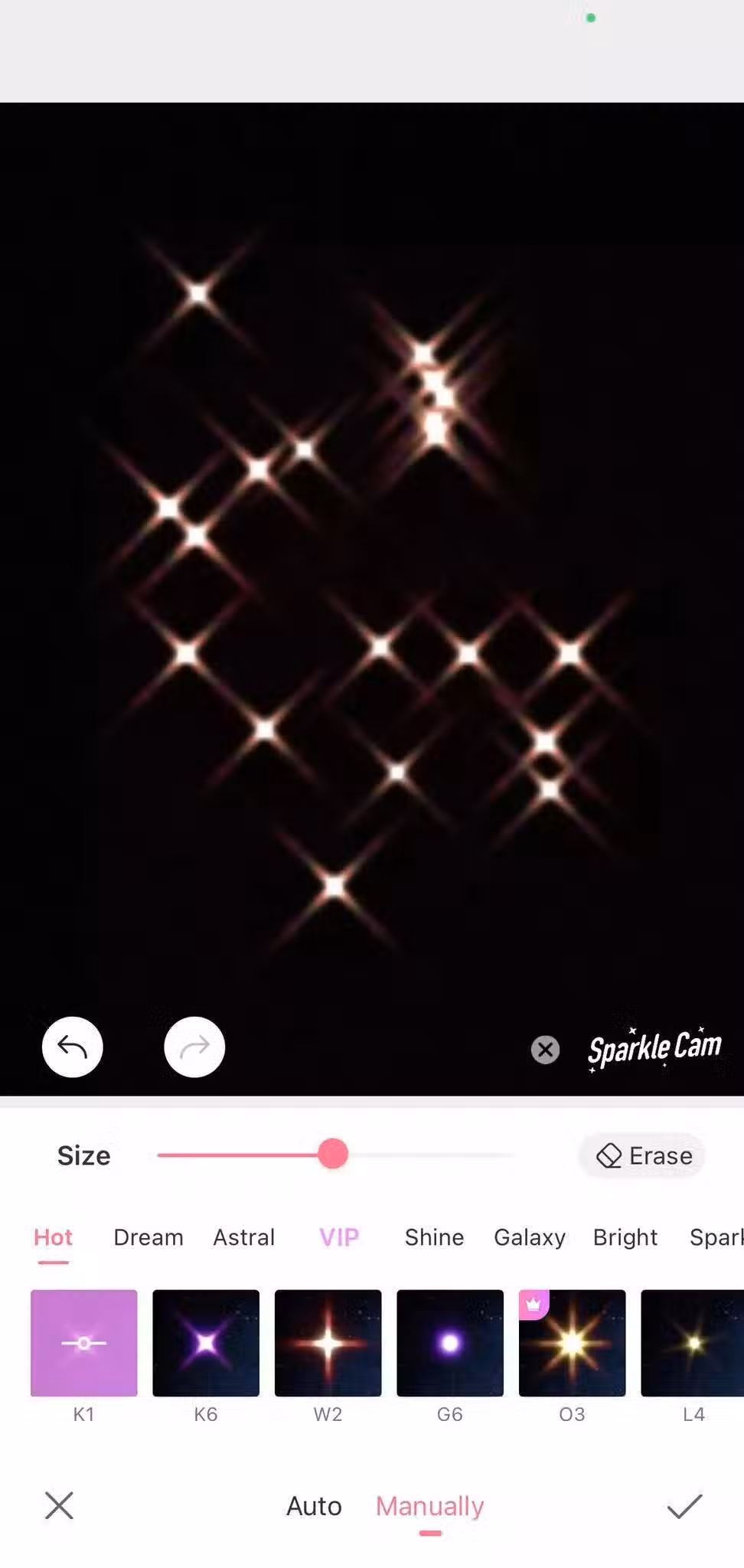 照片拍得不好看或是糊了別擔心,因為還有救!Sparkle Cam上的閃光特效可以隨便加,廢片立馬搖身一變氛圍感大片。裡面的閃光特效類型非常多,而且還可以手動添加,自己打造獨特的朦朧效果。