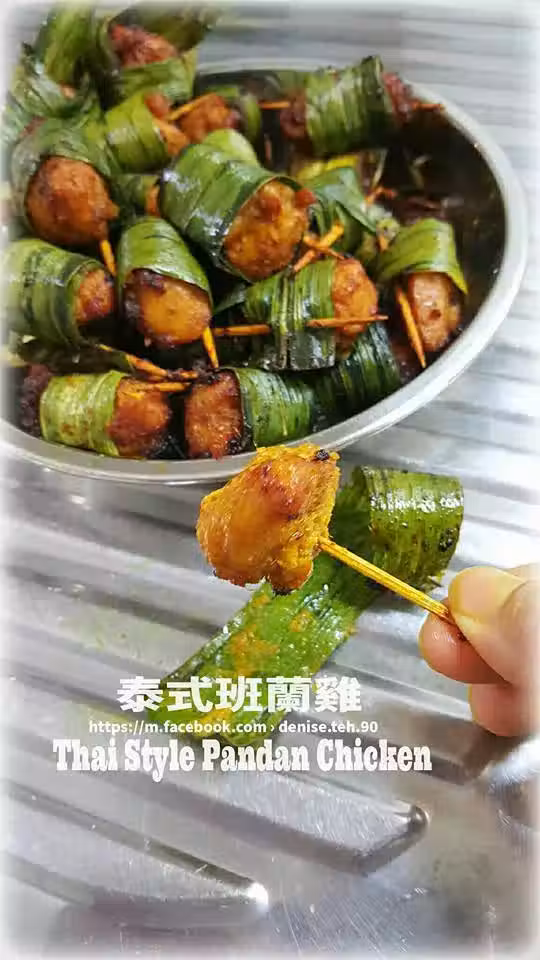 是道泰國非常受歡迎的小吃,菜如其名,以班蘭葉把不同的香料腌漬好的雞肉包上,然後油炸 ,讓班蘭葉的香味滲入雞肉中, 更加