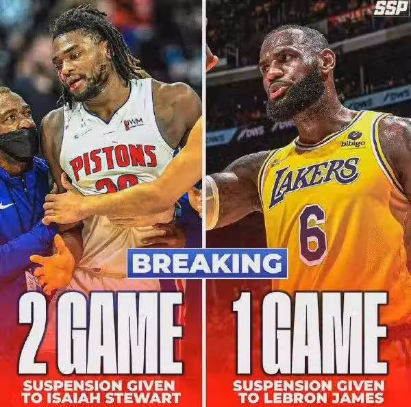 NBA官方處罰公告出了,斯圖爾特因在衝突中以違反體育道德的方式極具侵略性地沖向詹姆斯,加劇場上的爭吵,所以被禁賽兩場;