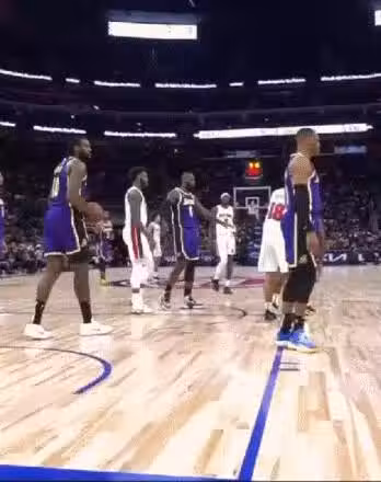 再來說說一直與老詹對標的KD,本場很奇怪,比賽進行到末節騎士連續追分階段,他卻連續3個回合站在中圈附近,並沒有參與進攻。