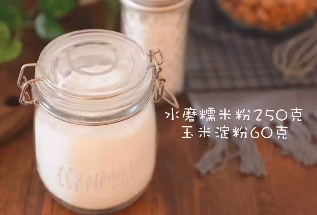 糯米粉放進不粘鍋,小火慢慢炒至微黃,這個就是手粉啦