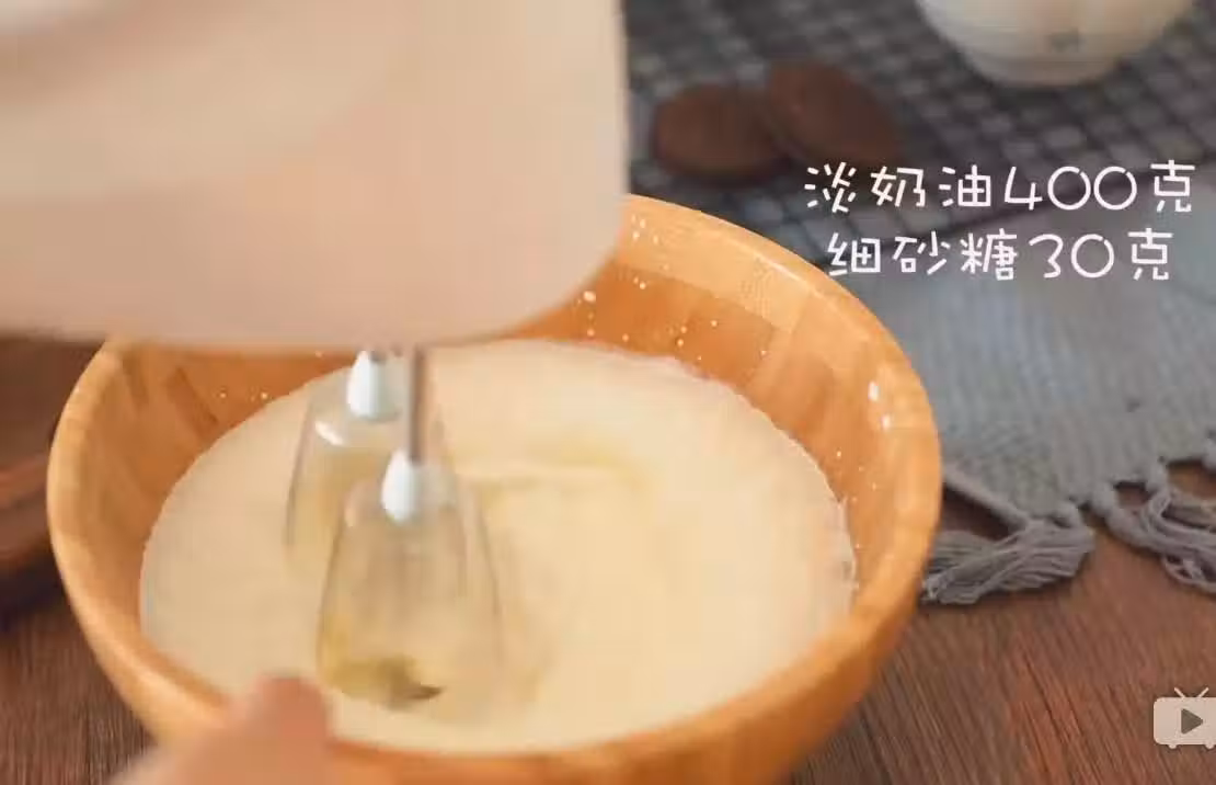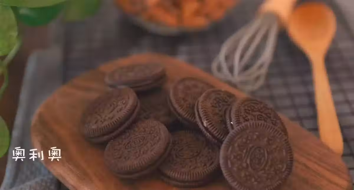 奧利奧裝進密封袋,用擀麵杖擀成細碎的粉末