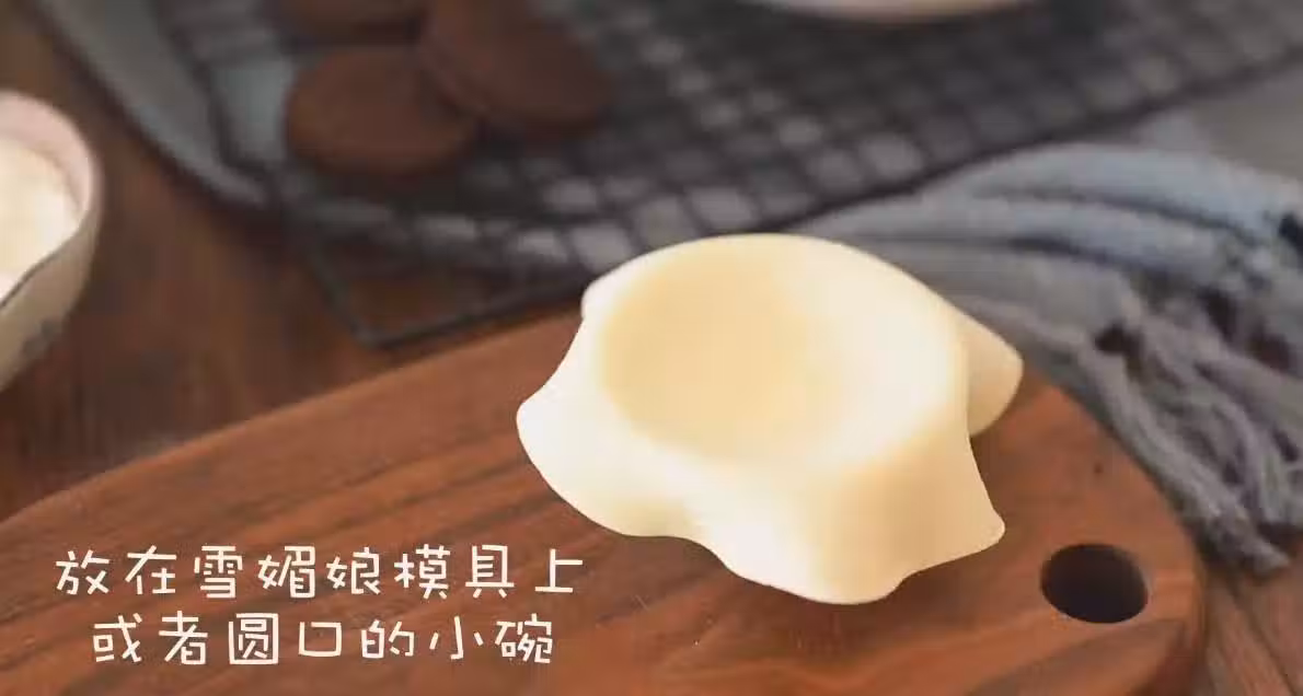將擀好的皮放在雪媚娘的模具或是圓口的小碗上