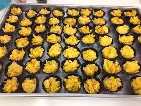 7用小茶匙把彩色糖撒在粟米片上。裝飾好後,準備進入烤箱。
