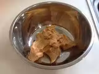 1把花生醬和油攪拌均勻,篩入糖粉繼續攪拌均勻。