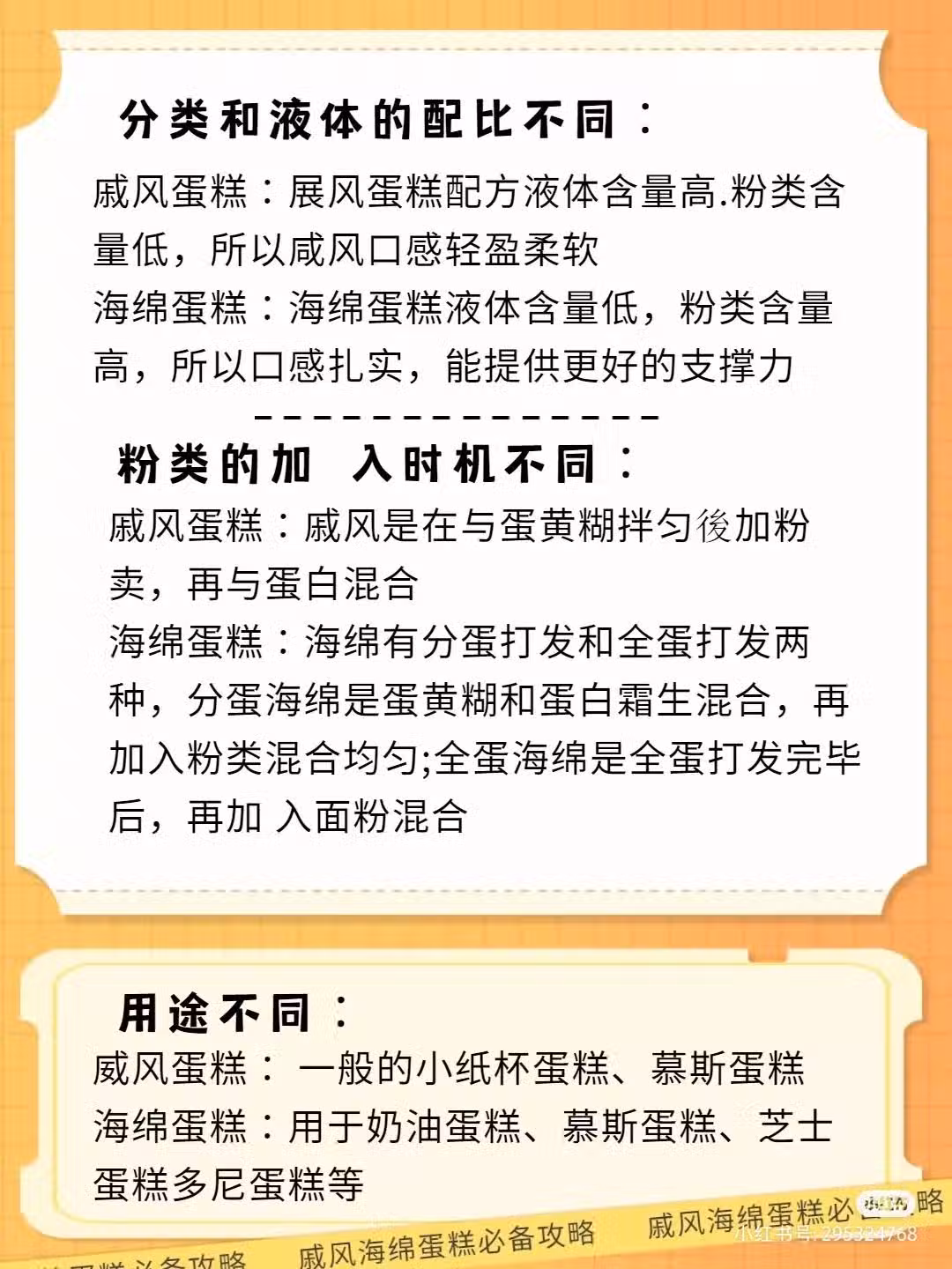 海綿蛋糕:用於奶油蛋糕、慕斯蛋糕、芝士蛋糕、多層蛋糕,因為海綿蛋糕要比戚風蛋糕紮實很多,承托力很強,裱花完成後也不會變形