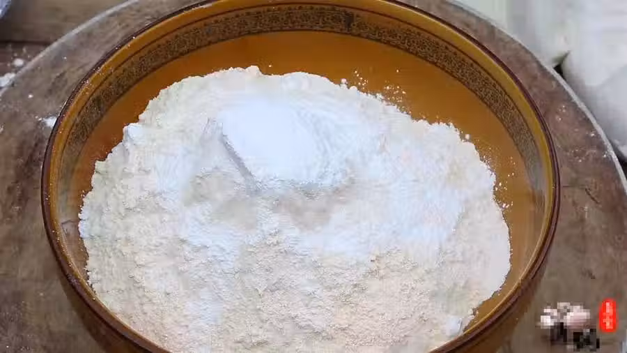 玉米澱粉兩碗、澄粉(小麥澱粉)一勺、糯米粉一勺、泡打粉一勺、起士粉一勺