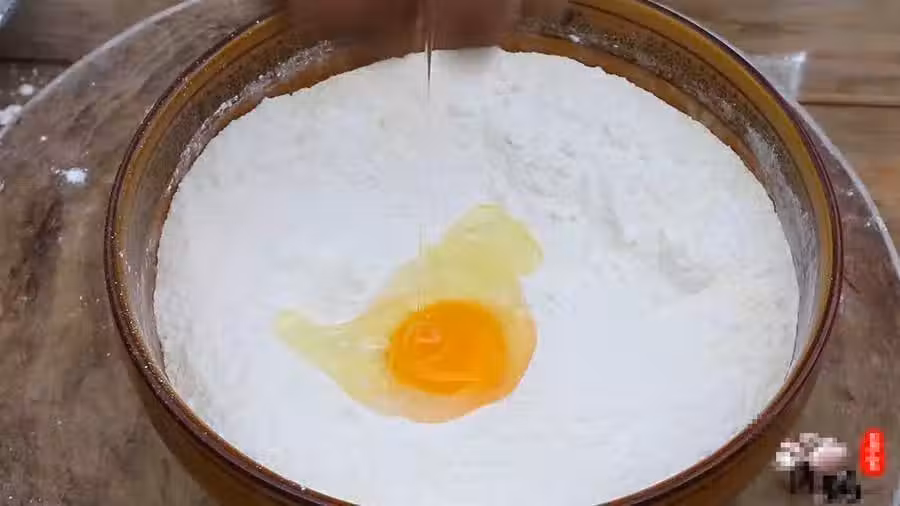 泡打粉能使麵糊更加彭鬆,起士粉起到增香增色作用,然後再用勺子給它攪拌均勻,再敲入一個雞蛋