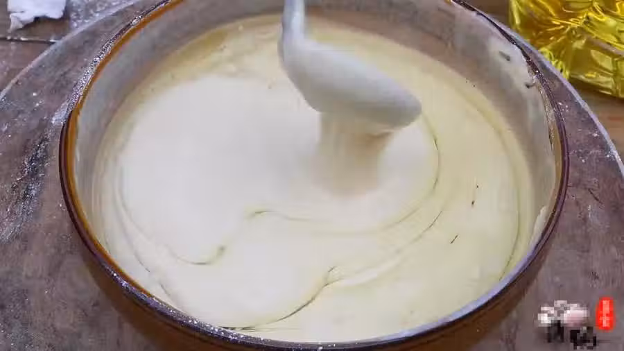 我們朝著一個方向給它攪拌均勻,再加入適量的沙拉油