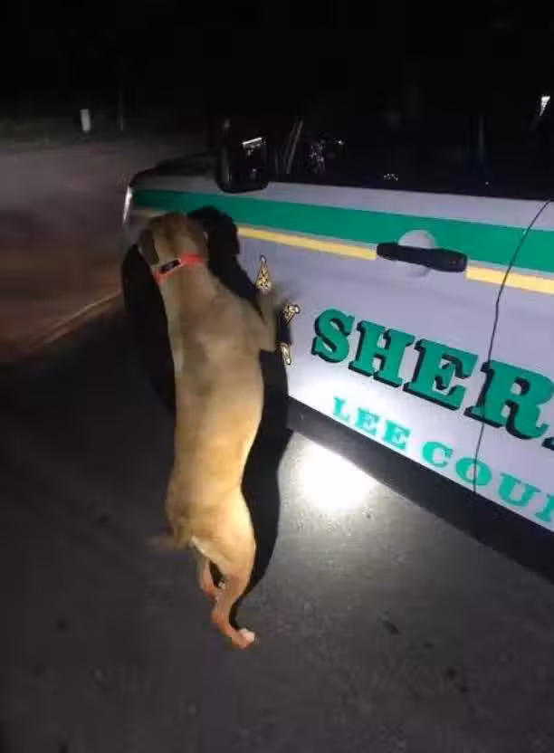 在深夜美國某個街頭有兩個員警正在巡視,工作時看見有隻狗狗朝著自己的車跑過來,兩個人看著狗狗越跑越近,不一會就跑到了警車旁邊,瘋狂的拍打著員警的門。兩位員警看出來了狗狗的不對勁,狗狗一直在搖晃著尾巴,似乎好像是要求救,有位員警發現了狗狗脖子上的項圈,猜到可能是狗狗迷了路正在救助他。