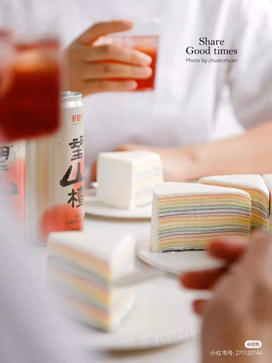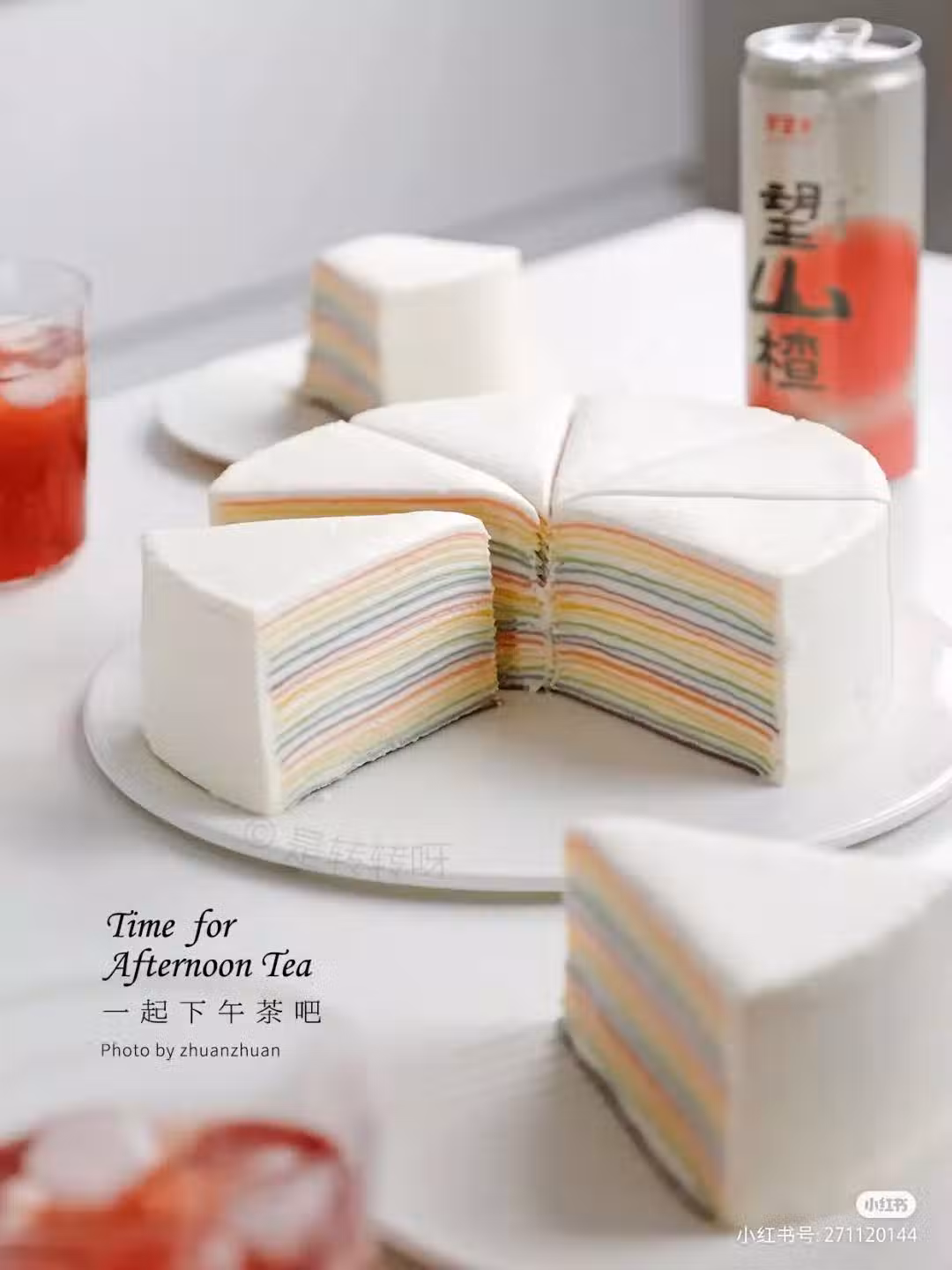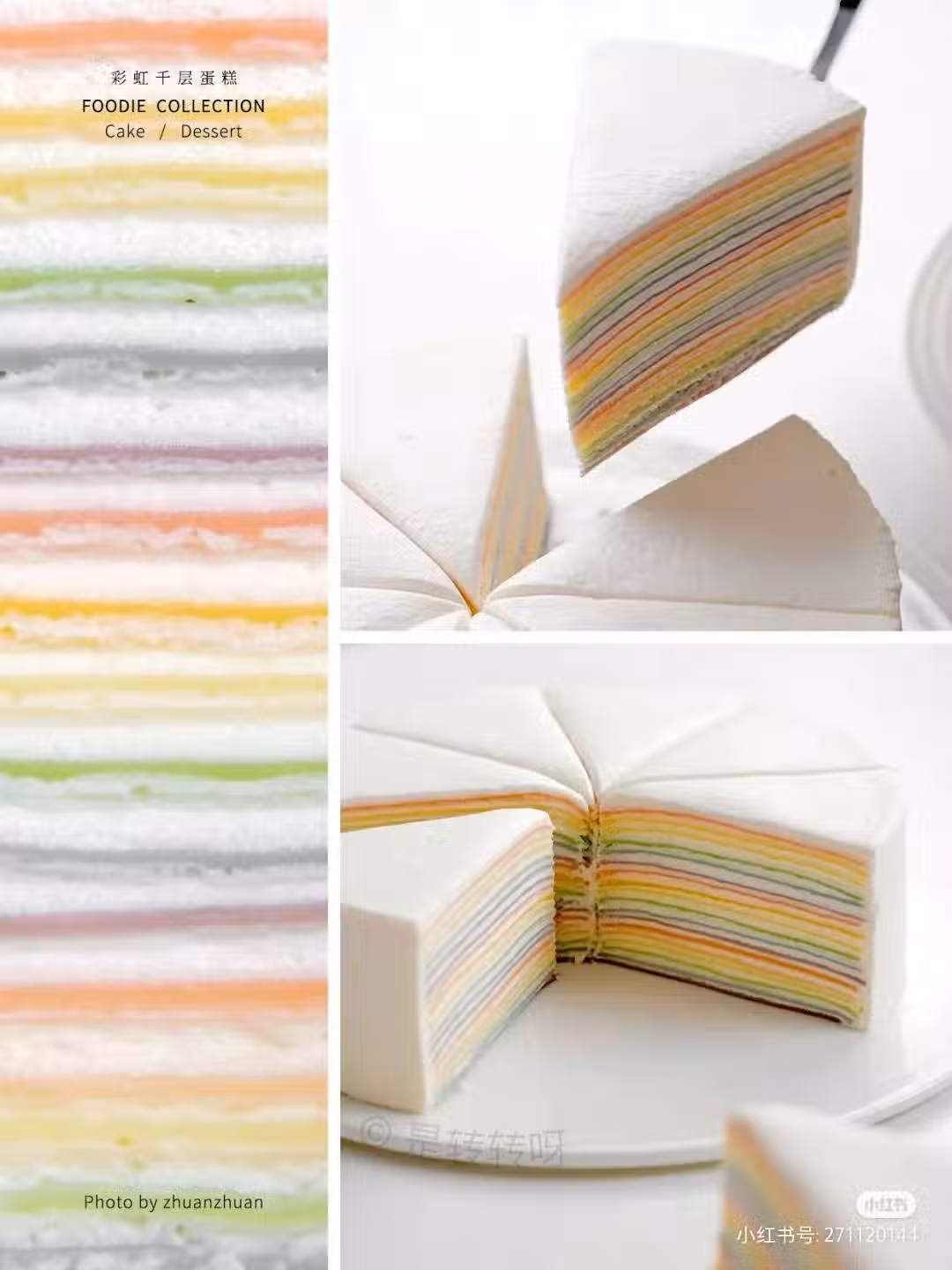 彩虹千層蛋糕,雨後天晴的清新治癒系甜品