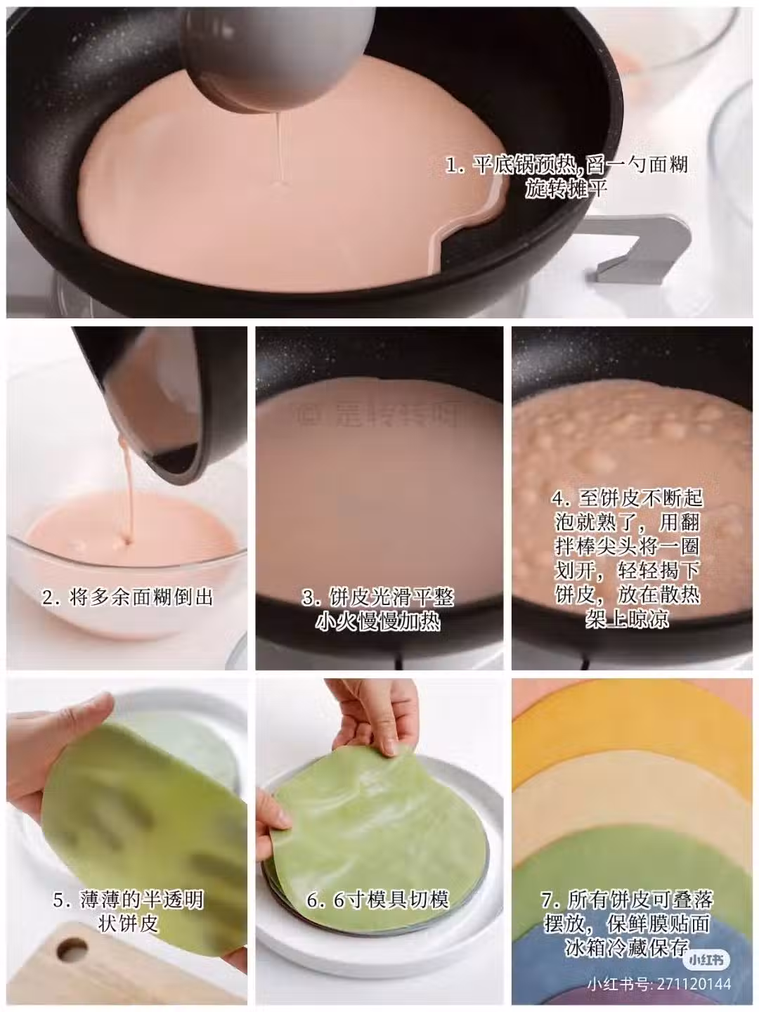 圖4中的用量為1份,可以製作三種不同的顏色,每個顏色可以製作4張餅皮