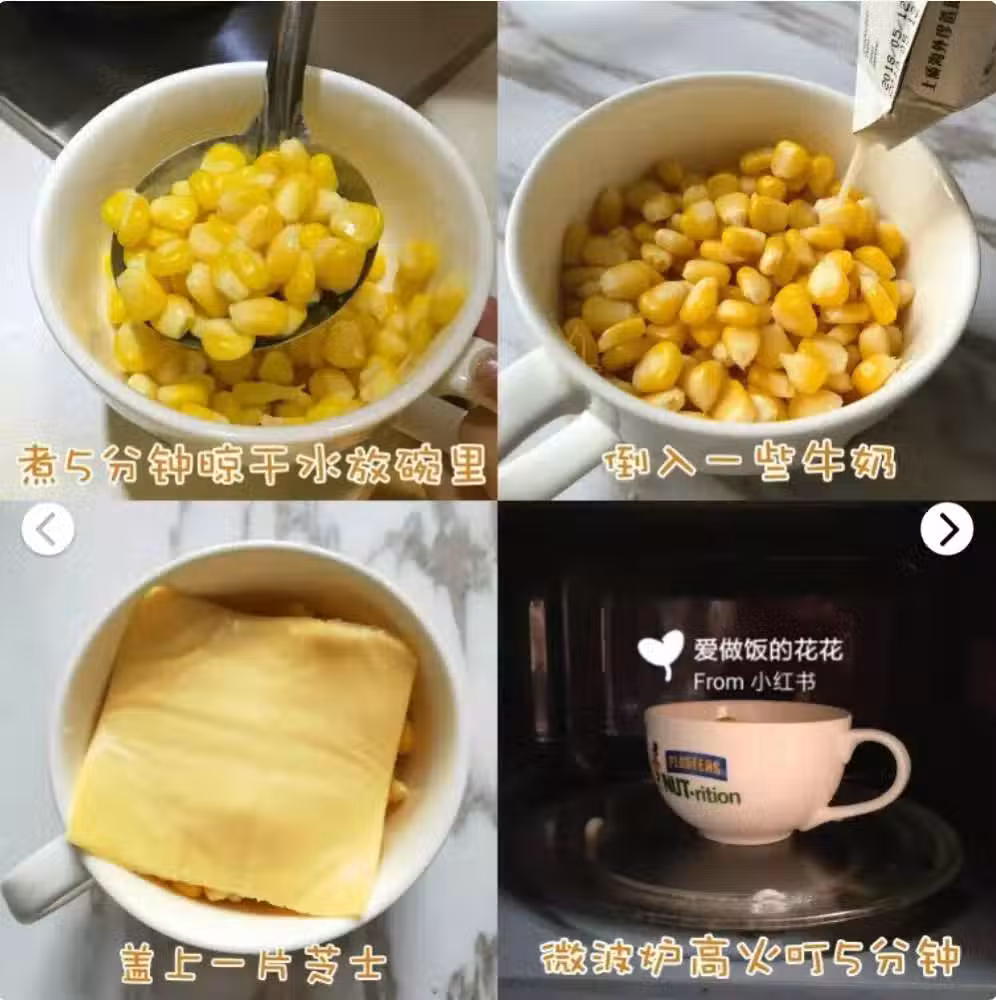 食材:玉米、牛奶、芝士、糖。