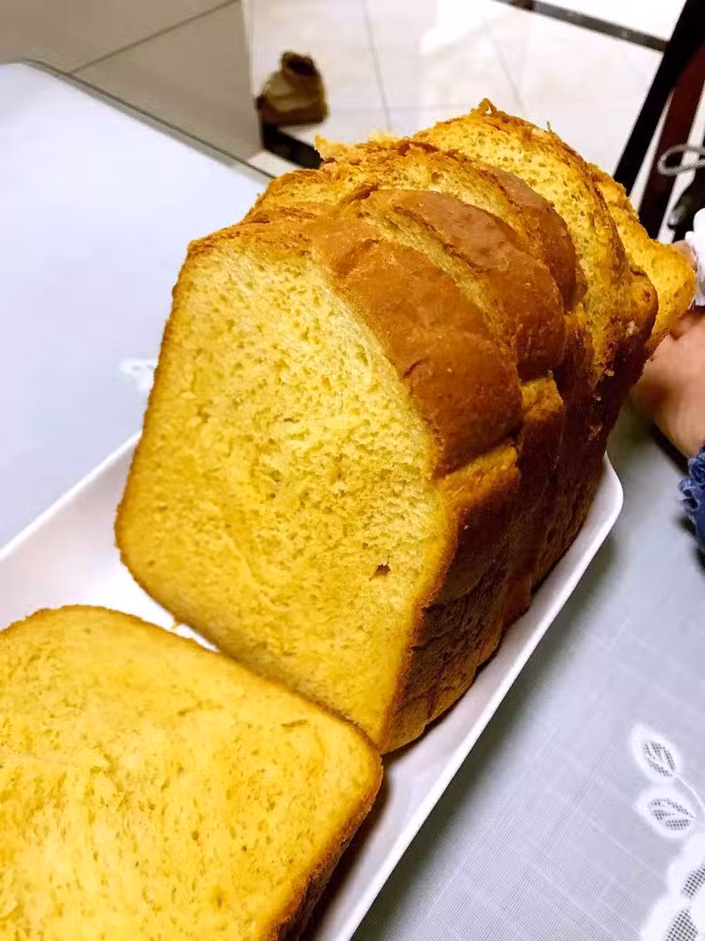 5、麵團放入烤箱中進行第二次發酵,一般麵團變大到吐司模具的七八分滿就可以蓋上蓋子了。然後放入提前180度預熱好的烤箱中,上下火烤制30分鐘即可。烤好的吐司取出後,要震動一下模具,然後將吐司脫模放涼,就可以切成片裝袋保存起來了。