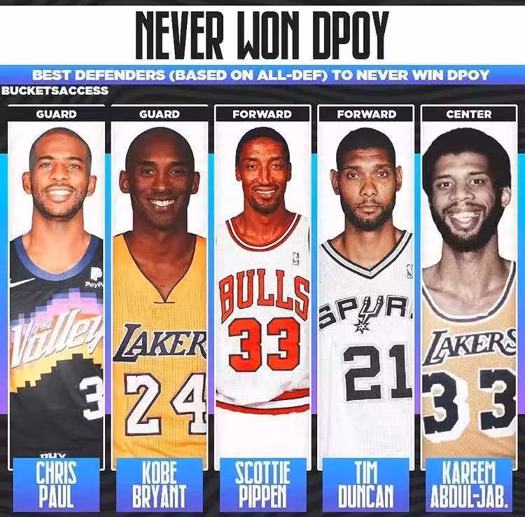 我們都知道,無論哪個時代,NBA都不缺乏出色的防守球員,但是別忘了有些巨星球員的防守也是非常出色,他們都從未拿到過年度最佳防守球員獎項。因此,美媒列出了五個位置上沒有拿到過年度最佳防守球員獎項,防守卻非常出色的五名球星,這套陣容怎麼樣讓我們來看看吧!