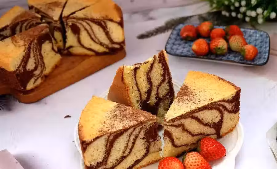 雙色斑馬戚風蛋糕,就是用兩種顏色的蛋糕糊,一深一淺,色彩對比明顯,顯得格外出彩。形成的紋路自然而不規則,有深有淺有粗有細,但這樣的紋路更加好看。