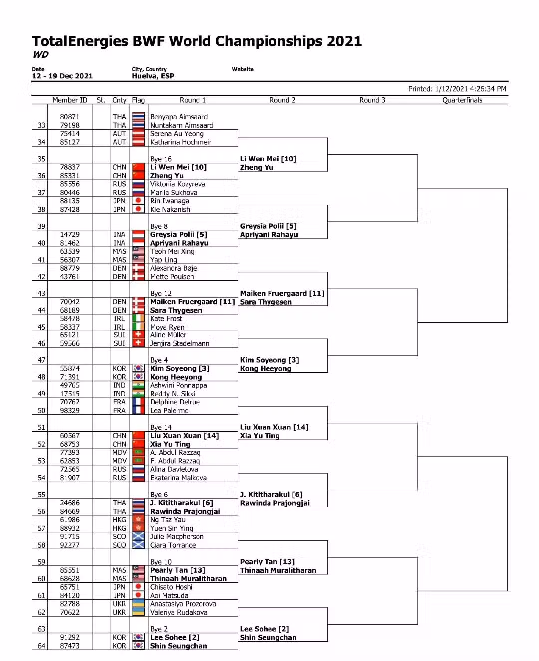 李汶妹/鄭雨首輪輪空,次輪挑戰性不大,1/8決賽將對戰奧運冠軍波莉/拉哈尤,劉玄炫/夏玉婷首輪輪空,次輪可能遇上蓬納帕/瑞迪,1/8決賽將對戰基蒂塔拉庫爾/拉溫達!
