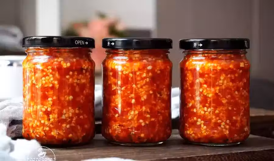 裝罐後不需要完全密封,扭蓋子的時候稍微留一點點縫隙,因為辣椒醬在發酵的時候會產出一些氣體,開蓋的時候容易炸開。注意,裝罐的時候儘量不要碰到辣椒,可戴一次性手套操作,不然會辣到你懷疑人生。