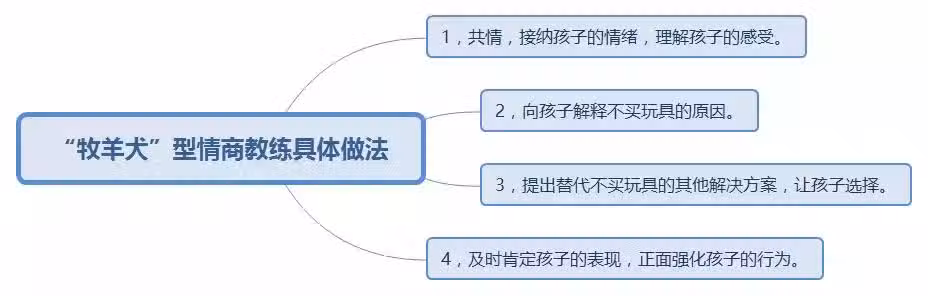 面對逛商場時孩子非要買玩具,家長不同意,孩子就開始發脾氣時。著名情商教育專家張怡筠提出了:情商的教育風格—「牧羊犬型」情商教練。