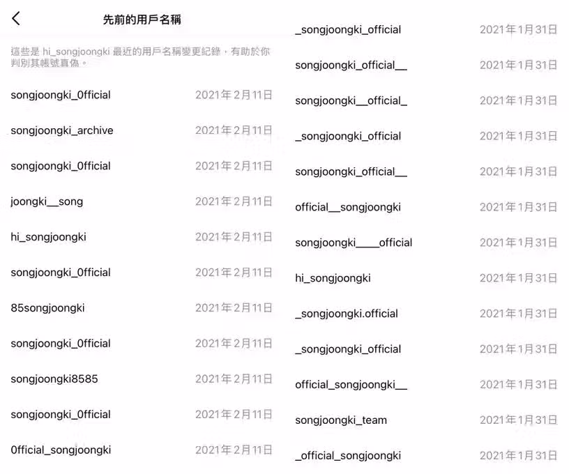 不過網友也發現一件好笑的事,在開通IG前,宋仲基本人(?)似乎很糾結帳號名稱要叫什麼,名字不斷改了又改,足足改名了49次。果然不愧是糾結之王處女座XD~