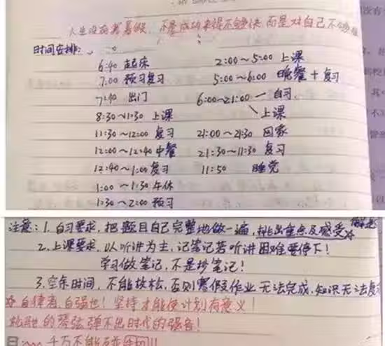 這份作息表,從早上6:40一直持續到晚上23:50分,計劃滿滿當當,幾乎是分秒必爭。