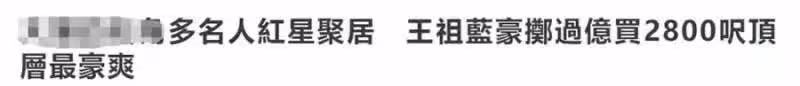 8月26日據媒體報導,王祖藍曾在2015年以1.1428億元的高價買下了某樓盤的頂層特色戶,其單位實用面積為2809平方尺(約312平方米),據悉當時該房屋的成交價以及每平方均價都創下了當時的房價新高。