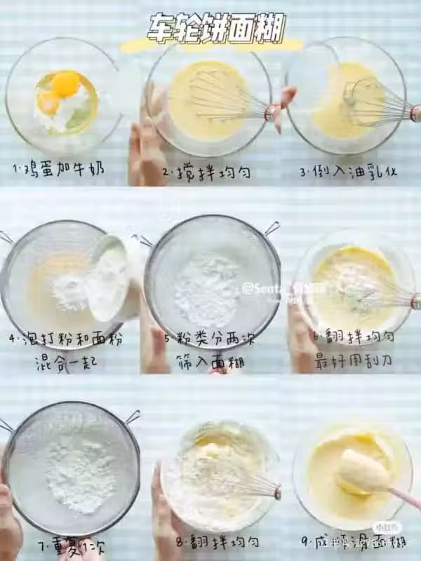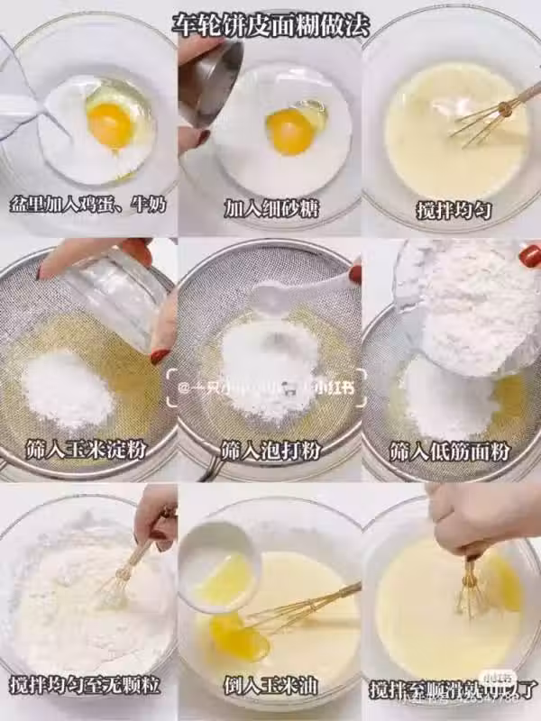 下圖為車輪餅的全部做法,大家只需要跟著圖文學習就行咯!