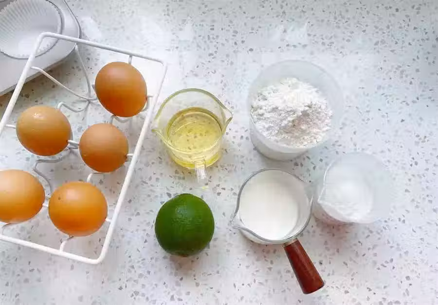 蛋黃糊:蛋黃5個,細砂糖20克,玉米油40克,牛奶40克,低筋麵粉85克