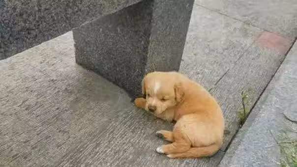 網友說,自己看到狗狗的時候,就只有牠單只在這裡,周圍根本就沒人,而當時,狗狗似乎抱著公園這冰冷的石椅睡著了。