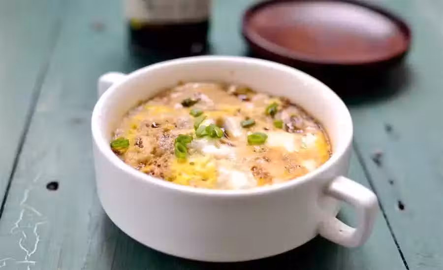 然後將秋葵片撒在蛋液上放入蒸鍋中蓋個蓋子,避免蒸的時候水蒸氣進去影響成品,上汽大約蒸5分鐘左右,蒸好的蛋羹淋上少許的醬油,舀上一口吃,滑溜溜,真美味,孩子見了忍不住一勺一勺的挖著吃。