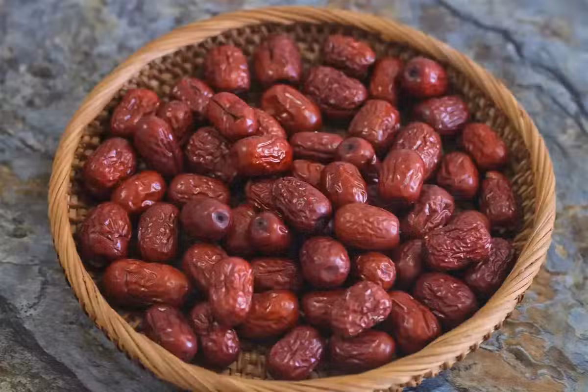 【食材】:紅棗150克、牛奶200克、雞蛋8個、紅糖60克、玉米油105克、低筋麵粉225克、無鋁泡打粉4.5克、小蘇打3克、鹽3克、白芝麻適量。