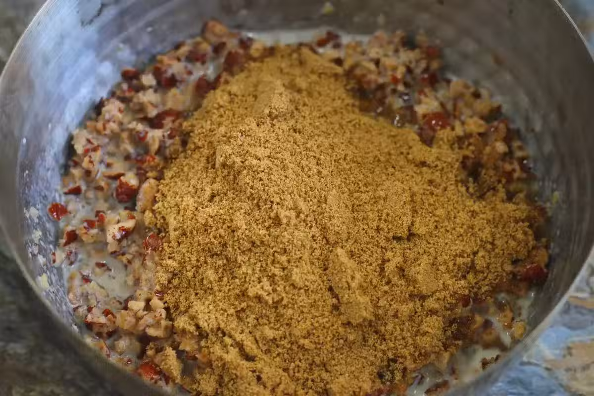 7、然後再加入紅糖,攪拌均勻,此時的狀態如圖。