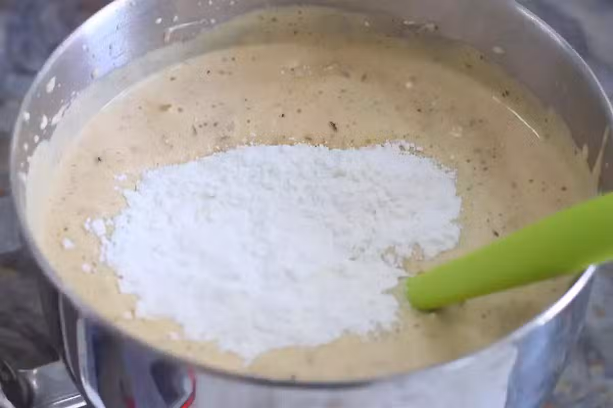 10、分兩次加入麵粉拌勻,要像炒菜翻炒那樣切拌,不要劃圈,不然會消泡。