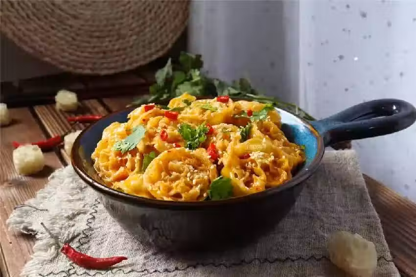 比速食麵還方便的面藕,脂肪含量低,還完好地保留了礦物質和膳食纖維。因為它不是工業製品,屬於農副食品,壓根不用油炸,簡單來說就是高溫蒸煮後擠壓成型,再進行自然風乾晾曬就可以了。