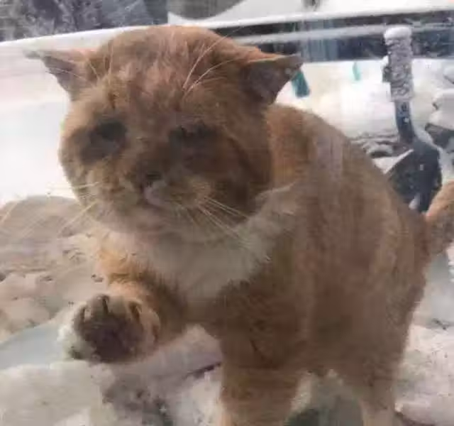 這是一隻十分狼狽的流浪貓,牠身上有著各種傷,爛牙、凍傷、咬傷、跳蚤、皮膚病、糖尿病等等。