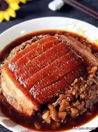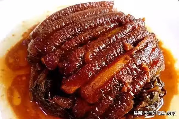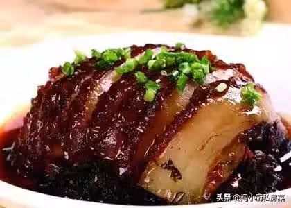 梅菜扣肉,是一道無論你是否喜歡吃肥肉,都可以吃上幾口的硬菜,也是春節餐桌上的常見菜。它口味咸鮮,肉質軟爛,肥而不膩,且梅菜香味濃郁。與別的菜做法不同,這道菜還加了豆豉等湘味調料,使其顏色醬紅鮮亮,湯汁粘稠鮮美,配上一碗米飯,感覺好極了。