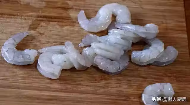 用刀在蝦背上劃上一刀,去掉蝦線,洗凈備用。