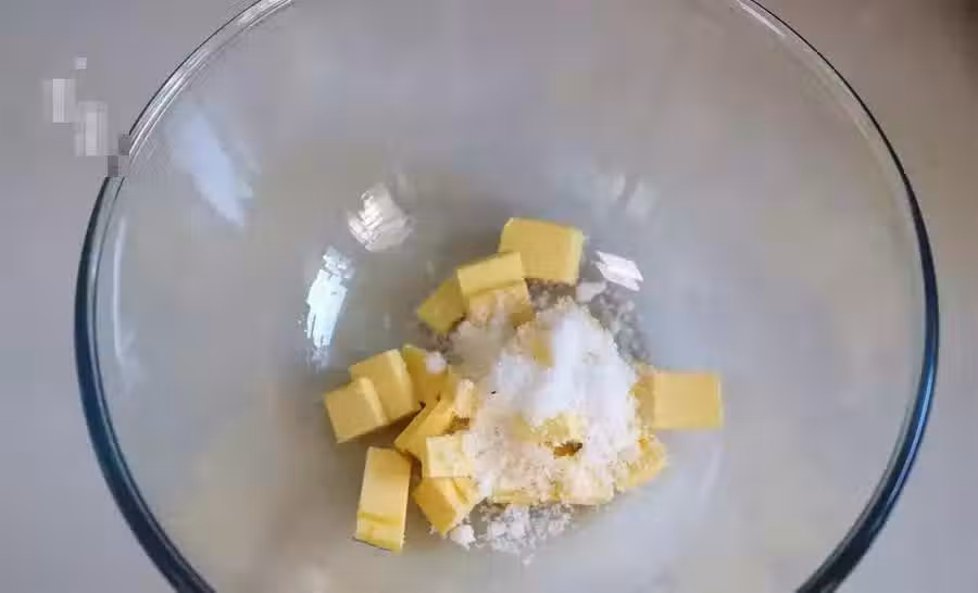 1,70克黃油切成小塊,放在大碗中室溫軟化。然後加入10克綿白糖或者糖粉,再加1克鹽,用電動打蛋器攪打均勻。(這裡儘量不要用白砂糖,不好攪打均勻。)