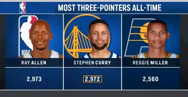 現在每一輪NBA比賽,庫里都是絕對焦點,因為他即將打破雷-阿倫的三分歷史紀錄。不過,近6場庫里狀態都不好,投籃命中率低至33.1%,三分命中率為34.9%,手感下滑明顯。此番庫里距離追平雷-阿倫的三分歷史紀錄還差6記三分。對於庫里來說,面對東部倒數第三的對手,一場比賽投入6+三分並且率隊取勝似乎並不是什麼難題。