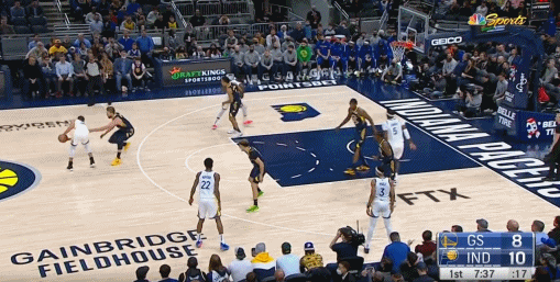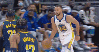 下半場,庫里的手感在提升,躲過布羅格登的防守命中關鍵三分。第三節末段庫里再次手起刀落,超遠三分命中,看上去破紀錄有希望!然而步行者並沒有放鬆,庫里再度被限制後,直到比賽最後時刻才再次站出來,關鍵三分迎來本場第五記三分,距離雷阿倫的紀錄只差1個三分。隨後庫里變向過掉特納上籃幫助勇士在最後時刻追平比分。